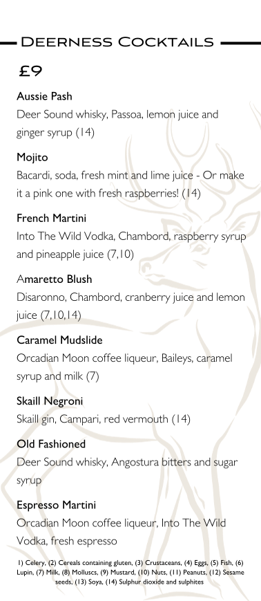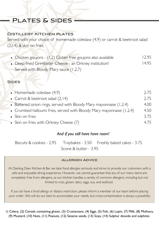 Deerness Distillery and Dashing Deer Kitchen & Bar Menu