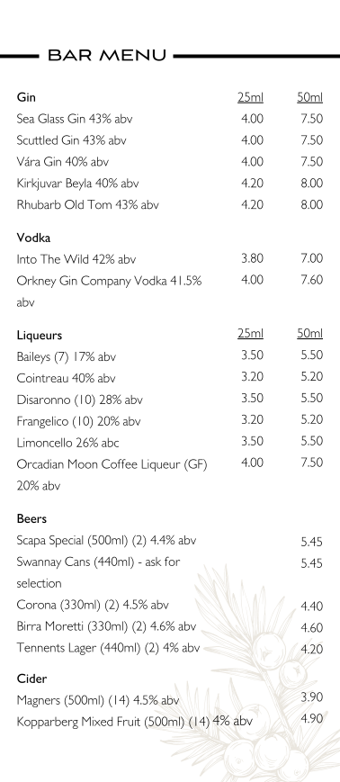 Welcome to Deerness Distillery and Dashing Deer Kitchen & Bar, a delightful gem nestled in Newhall, Orkney. With a menu that beautifully marries flavor and freshness, this café stands out as an essential stop for food lovers. Indulge in their Club Sandwich, featuring juicy chicken, homeroasted gammon, and crisp vegetables, all for just £8.95. The Soup of the Day, served with artisan sourdough, promises comfort and homely warmth for £6.50, making it a perfect choice for lunch.
